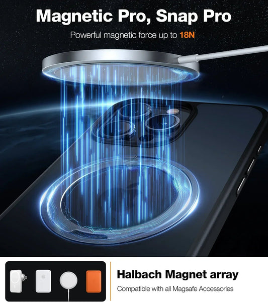 -Pioneering 360° Spin Stand for any angle-Stand, charge, hold: All-in-one convenience-18N magnet, 40% stronger than others-12ft Drop-Proof: Superior Raised Edge Protection-Mechanical Clicky Sound-4-Zone Spinning Axis